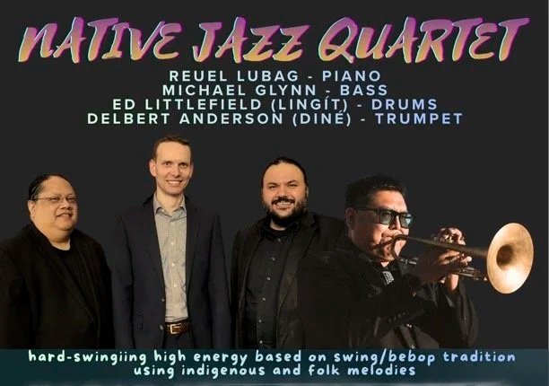 THE NATIVE JAZZ QUARTET is a hard-swinging and high energy performance group based on the swing/bebop tradition using indigenous and folk melodies in their arrangements. It was co-founded by Ed Littlefield (Lingít - drums) and Christian Fabian in 2011. Featured in the band is longtime member Reuel Lubag (Filipino-American) on piano, Michael Glynn on bass and Delbert Anderson (Diné) on Trumpet. Everyone in the band also contributes arrangements of melodies that come from their distinct heritage. The goal of the trio is to grow the Native Jazz movement and to attract a national and international audience of all ages. The Native Jazz Quartet is an exciting band, with an exciting message, that turns performances into cultural stories.