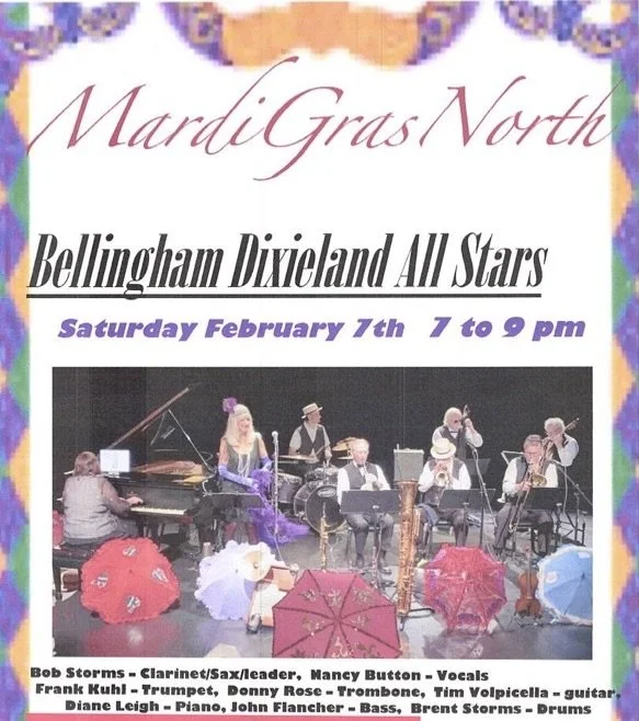 During the program be prepared to take part! The fun begins on February 7th in the middle of Mardi Gras season, which lasts about a month, and is celebrated in many places around the US. Since there has only been one band, Bellingham Dixieland All Stars, that does the Mardi Gras in our area you don’t want to miss it! It’s good music and fun! Bring the family, but get there early to get seats, and get ready to join in celebrating Mardi Gras.